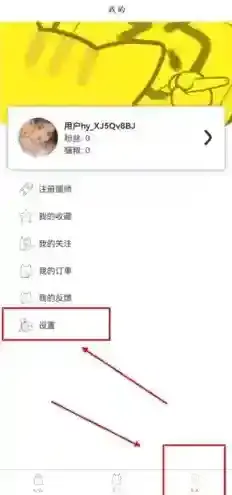 1、在约稿猫app我的里面,看到设置的选项并进入;