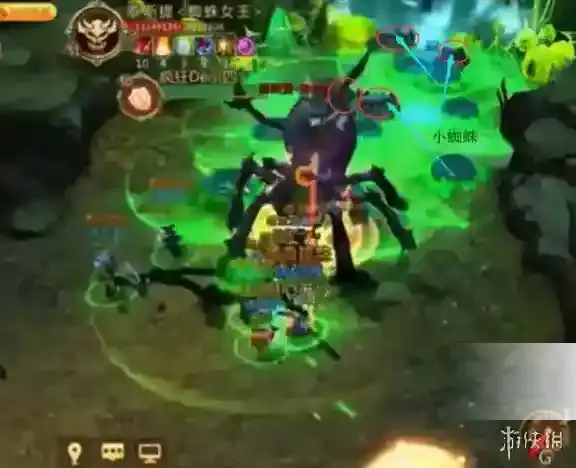 大蜘蛛出来后会连线一名玩家大蜘蛛会一直往连线的玩家身边跑,而地上的毒囊就是这个时候用到了,大蜘蛛走到毒囊里面就会瞬间被炸死,大蜘蛛会刷新5只出来。只要让他炸死就行基本不用管。