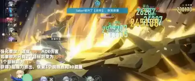 炉心共鸣:每当我方角色释放终结技时,获得3点。每点可为saber恢复8点能量