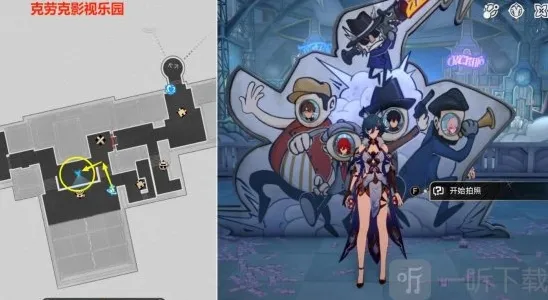 1、在克劳克影视乐园下图所示位置邀请2个角色完成拍照,可以解锁贴纸伙伴们·一;