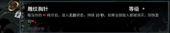 每当你的耗尽后,进入无敌状态,持续10秒。如果全部敌人都被消灭,则恢复30血量。