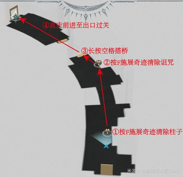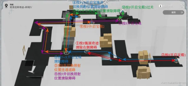 房间II:按缩略地图图示①-④步骤顺序,在对应机关位置操作并按箭头路径移动