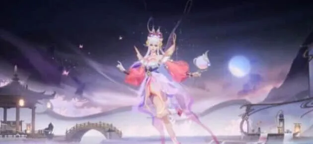 ⑥三技能:蝴蝶翅膀瞬间展开,花颜绽放,湖面波纹浮现,妖灵纹理装饰其中;蝴蝶化为银饰向前冲击,命中后蝴蝶虚影闪烁出现。