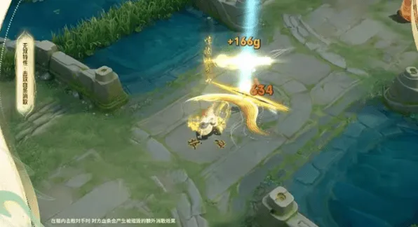 3、推进破塔:在局内击毁对方的防御塔时,会有额外击毁表演;金色能量伴随诗句从天而降。若有多个玩家佩戴无双品级皮肤,展示给予防御塔最后一击的玩家的推进破塔效果;若最后一击玩家没有使用无双皮肤,则展示任一参与推塔的无双皮肤玩家的推进破塔效果。