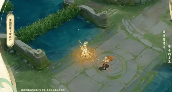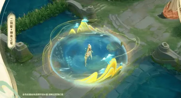 2、二技能:金色能量丝线连绵环绕水面,倒映出琉璃幻景;在圈中移动时 可以从不同角度观看盛景奇观。