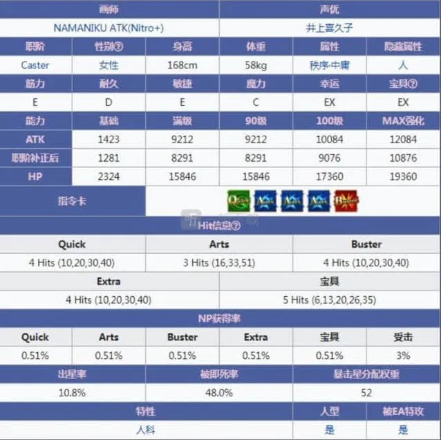 1.基本属于垫底水平的atk白值,外加三蓝配卡,平a伤害极低,基本输出完全只能指望宝具。