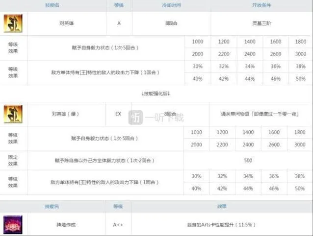 山鲁佐德的1技能是唯一的增伤技能,虽然幅度不高,但是升级的优先度依然排在第一位,而且因为绑定了灭气,所以需要斟酌考虑使用的时机。山鲁佐德的2技能因为魅惑概率不高,所以推荐绑定宝具使用,在降低了敌人的弱化耐性之后,基本可以稳定魅惑男性敌人,技能附加的加防技能高达40%,虽然只持续2回合,但是这么高的加防算是非常不错了,对生存能力提升很大。