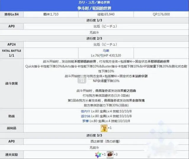 进度一不是太难,基本上大家都没有问题,然后哪吒比较麻烦,因为有回避和必中,推荐大家用高宝单体直接爆破掉,如果拖久的话,推荐大家使用有强化解除的从者。