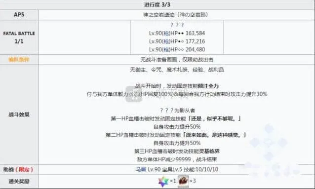 之后就是惊喜了,相信大家看影子也可以看出这位影从者是阿周那的兄弟兼宿敌迦尔纳,本关战斗倾向于剧情本,强制让助战的马嘶出场,因为有固定的战续buff,所以基本上是让大家看个剧情演出,我们就一起期待之后小太阳迦尔纳的活跃表现吧!