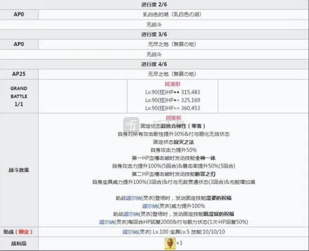 这一节的第一战和第二战的话,我们是只要撑过8回合就可以通关了,所以大家倒是不需要在输出1上下太多功夫,只要专心于苟活就好了,经典的梅林叠阿瓦隆战术也是可以上场了,不停的叠宝具回血吧。然后本节的最后一战,不太适合绿卡队速刷,大家可以采用经典的梅林队伍,一边叠宝具回血,一边输出,一听小编一直认为在长线作战中梅林依然是最好用的大拐。