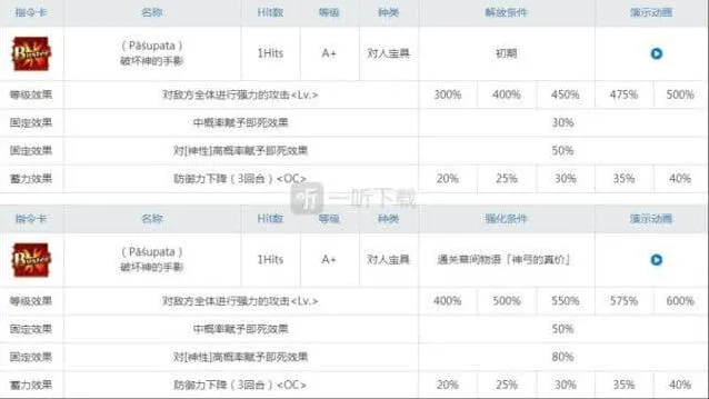 阿周那的宝具其实伤害不错,这都是因为阿周那本身攻击力高,有宝具本,魔放技能还是复合效果,加成略微高于普通魔放,所以阿周那其实一发宝具伤害很不错,在一般副本中就算只有一宝也是绝对合格,但是尴尬的地方在于迦尔纳的宝具是神性特攻,但是到了阿周那这里就成了即死,目前在绝大多数情况下即死还是相当鸡肋的,外加上此后弓凛也将实装宝具本,可以说在竞争之下阿周那本身的宝具伤害优势也是不太明显了。