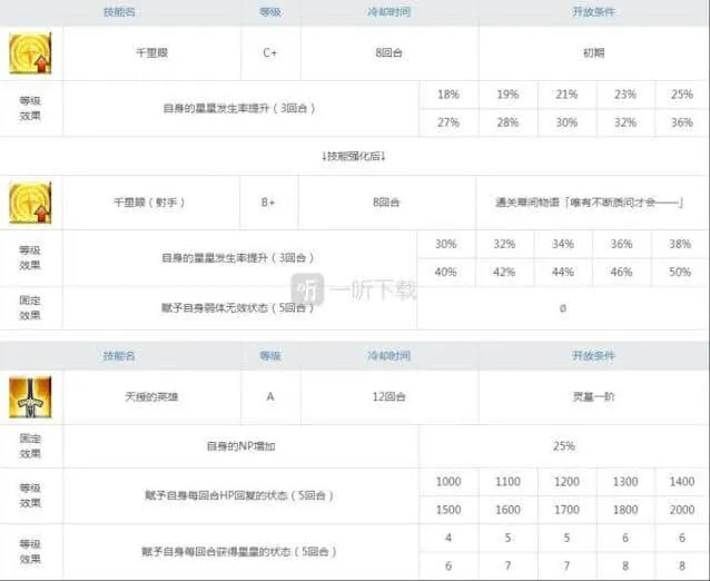 最后是被动技能,阿周那的被动技能有用的也就基本是加成暴伤的单独行动了,但是因为阿周那本身打星性能一般,出星严重依赖冷却长的2技能,而又没有集星技能,所以发挥也是有限,所幸弓阶本身集星权重高,弥补了这点。