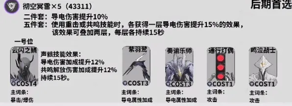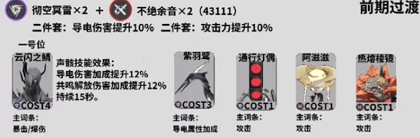 前期过度则可以使用彻空冥雷2件套和不绝余音2件套,搭配44111,4级声骸也是云闪之鳞。