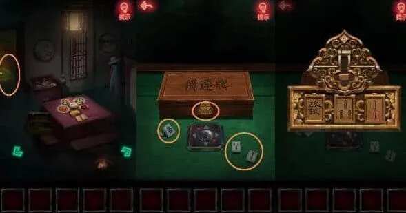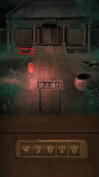13、然后我们点击铃铛即可开始游戏,我们跟随着娘子的灵魂行走,可以在牌匾山获得密码,点击柜子进行输入。