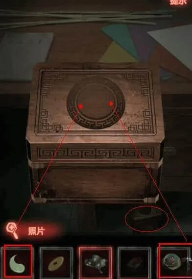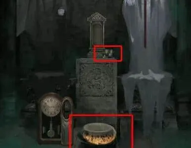15、我们点击棺材房的窗户可以找到密码:530862,点击纸人脚边的盒子即可使用密码打开获得道具玉珠。