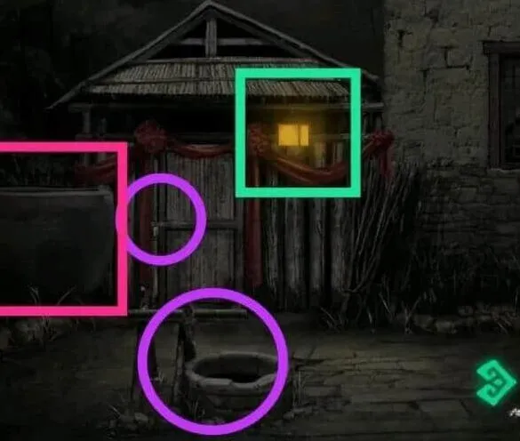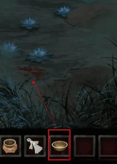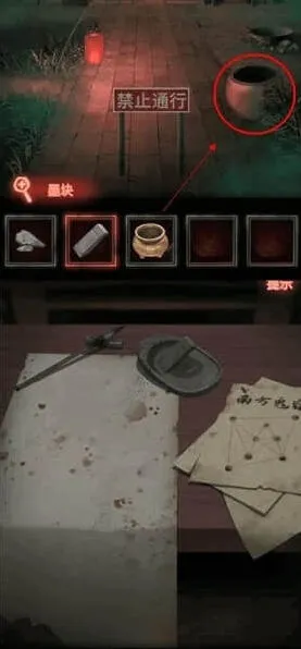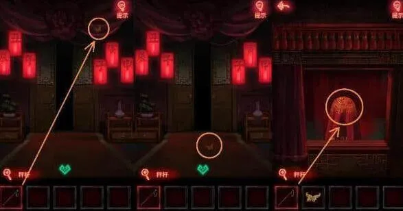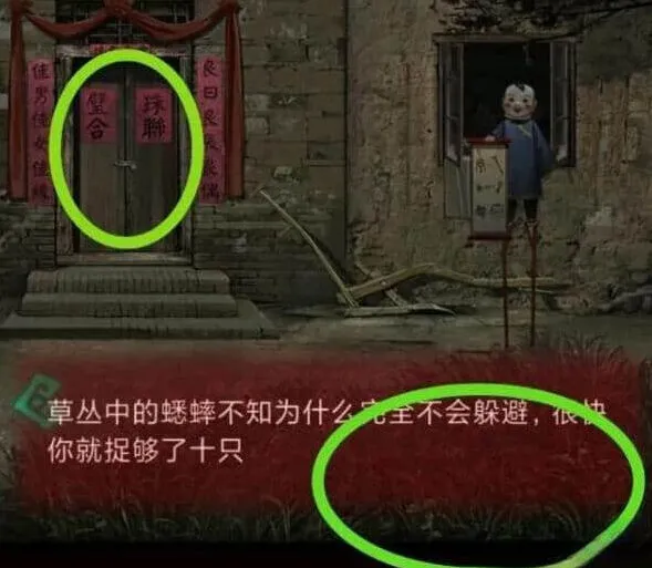 11、用密码打开门,获得道具,将道具装在水井上,查看灯笼线索,左侧的缸里有虫子。