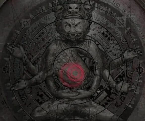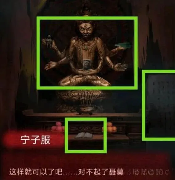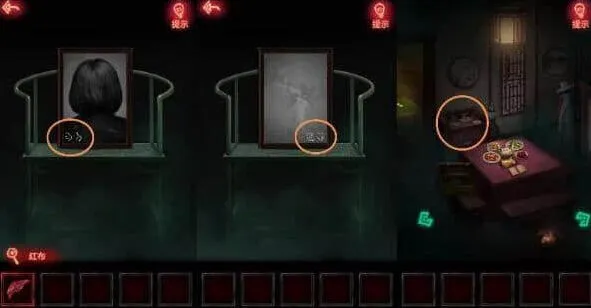 16、回到院中水井,将红色的轮盘进行更改,获得灵位旁照片。