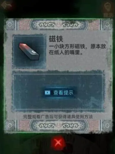 5、我们用痒痒挠就能够打开棺材获得道具钉子,点击纸人可以获得磁铁。