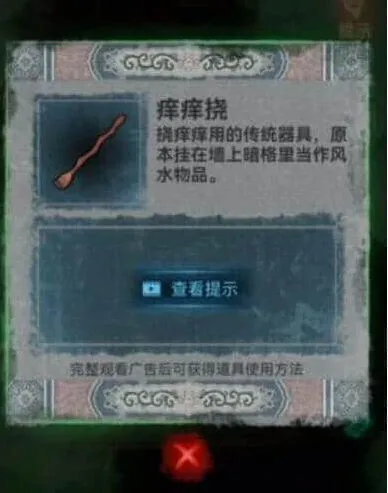 4、我们来到地下室的右边第三层书架上可以找到提示,我们点击墙壁获得痒痒挠。