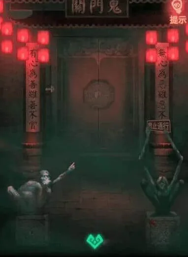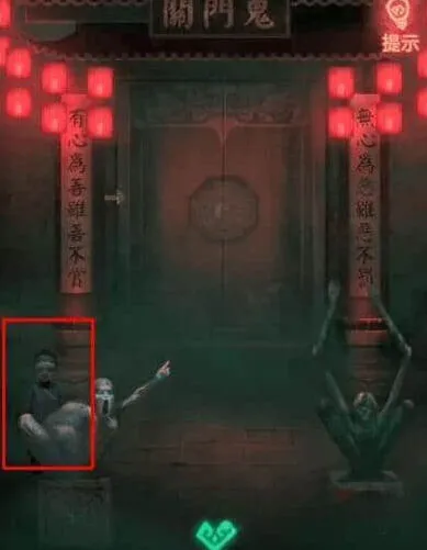8、完成游戏后拿到手机,去楼道拿出手机,出现一个老人,选没有被挡住的路前行,来到3楼,撕掉门神图。
