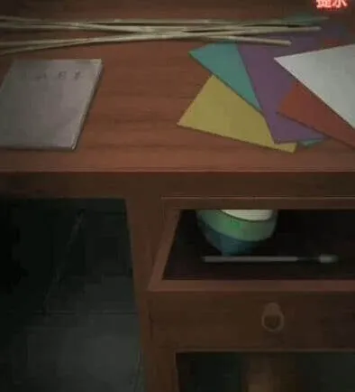 18、根据皮影数字提示和之前书的提示,获得密码43618,打开第二个抽屉,得到纸钱、小饰品。
