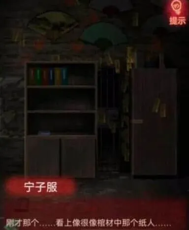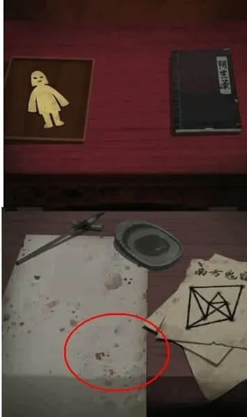 1、首先我们需要打开纸人店查看凳子,翻开凳子下的毯子可以看见机关,再点击桌子上的书架即可获得蓝色模型书,在下面可以获得纸钱。