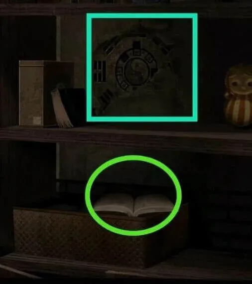 7、我们来到棺材房点击其中的陈旧柜子,将方块放入盒子中即可获得黄色模型书。