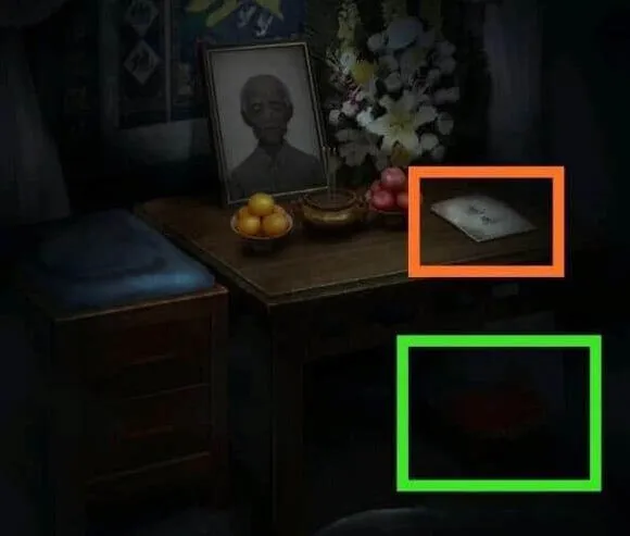 9、去4楼,来到老人遗像的位置,拿贡品上的指针。