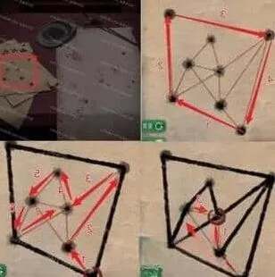 5、在电梯处拿符咒,这里柜子密码在信件左上角,从右边输入,每个数字点1次,随后点击上下楼,返回院子,去找道士。