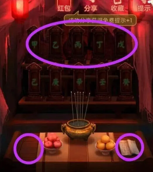 1、来到右边小祠堂,观看桌上的线索和牌位摆放的顺序。