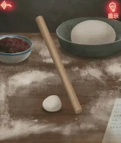 19、点击桌面的桌子和面团,将哭丧棒放上去变成擀面杖。