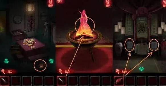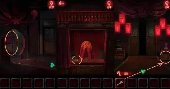 16、最后我们回到娘子房间点击八卦镜,用弹弓将镜子击碎再点击铃铛即可开始招魂。