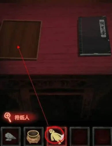 11、点击桌上的阴世录,将纸人放上去,来到有墨水的桌子,点击纸张触发对话,出来一个小孩。