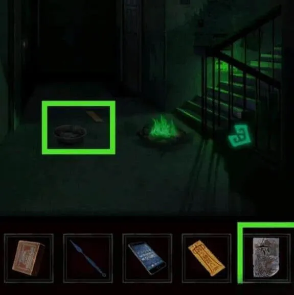 10、获得空符咒,门神图对地上的盆使用,点燃后触发烟雾报警器,然后灭掉火。