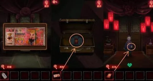 7、拼好图获得冥钞,冥钞放入红包中,将红包给孩子。