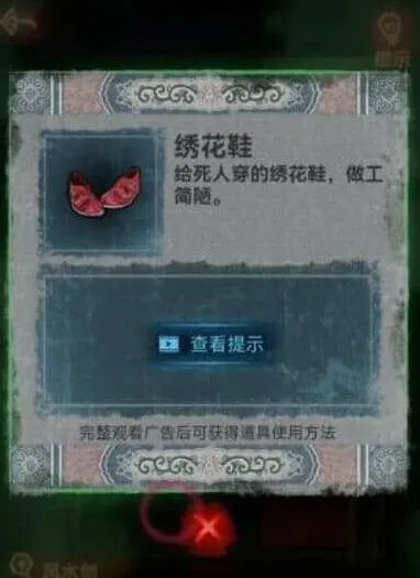 10、我们打开大门后可以在墙壁上获得道具风水剑,再次回到棺材位置使用风书剑隔开红绳子可以获得道具绣花鞋。