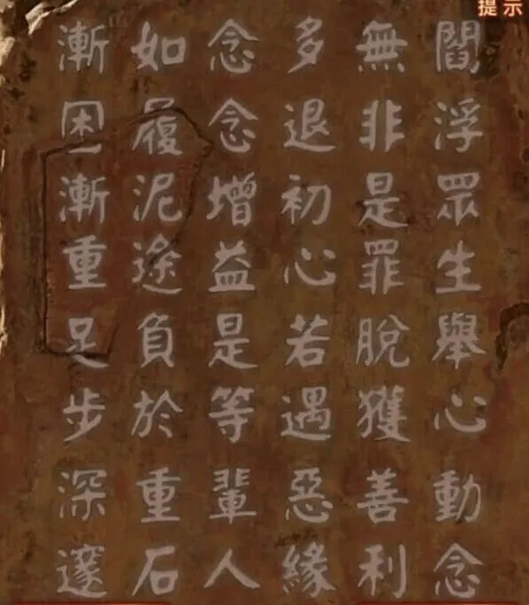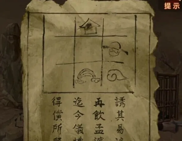 剧情后把石片放在左上角的石碑上,开始玩记忆小游戏了,这里给推荐一种作弊方法,拿上上面那张图,发送给自己的qq号,然后使用另一个手机登录qq接收图片,打开随便一个编辑软件,点击开始后跳那个字就在那个字上面写顺序~完成之后石碑裂开,进入就可以找到女主了。
