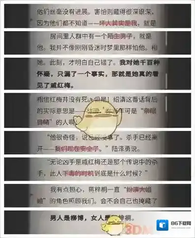 《流言侦探》现在篇10至12关通关攻略 2025-06-22 18:37:37 编辑:小红帽 分类:应用教程 • 阅读:261 现在第十章 流言侦探通关 流言侦探攻略 现在第十一章 现在第十二章 流言侦探应用相关内容 全部 流言侦探通关 流言侦探攻略 流言侦探 流言侦探怎么下载 流言侦探下载地址分享 流言侦探怎么下载 流言侦探下载地址分享 流言侦探玩家 一、地址 二、游戏介绍 流言侦探是一款开放式的文字侦探手游,玩家在游戏中扮演一名侦探或者说联络的人,你将需要和各种人进行交流,通过人们的话语和自己的推理逐渐的找出凶手。游戏拥有数十万的文字说明和缜... 2025-09-08 流言侦探现在篇第八章攻略 现在篇第八章线索 流言侦探现在篇第八章攻略 现在篇第八章线索 更多流言侦探攻略→流言侦探攻略大全 现在篇第八章中找出关键线索“GO BACK”、“怀疑的种子”、“八百川村”、“刘村长”等描红文字;黑体字隐藏的重要线索“红梅我们来了”、“今天果然戴了包头的帽子和口罩”、... 2025-07-11 发表回复 请登录后评论... 登录后才能评论 评论列表 (0条)