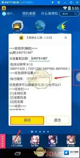 1、打开安卓模拟器,并将模拟器分辨设置720*1280后,运行游戏。