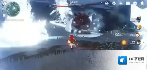 之后持续攻击大雪猪王,使其血量降低到30%左右,这时,大雪猪王经过短暂的前摇会进入狂暴状态,等其进入狂暴状态后,我们再继续攻击,在狂暴状态下将其击杀,就可以同时解锁第二和第三个成就,分别是挑战成就–「国王刺客」以及隐藏成就–「冷静点!」。