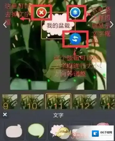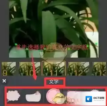 4、还有一个功能文字,我们点击文字,然后选择喜欢的文字框,并输入你要说的话,就把文字添加到视频上了!