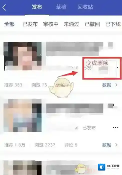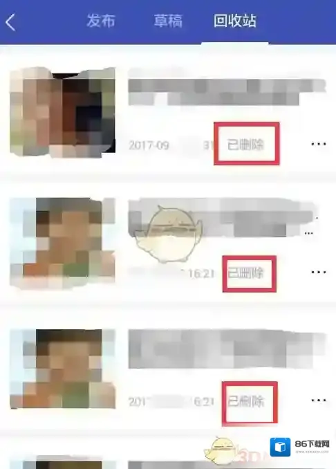 6.最后在回收站中,我们可以看到已经被我们撤回并删除的文章或视频,是不是很容易呢?目前只有APP端支持删除,网页版不支持删除。