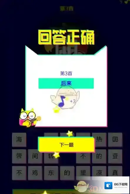 8.马上将识别结果填写到猜歌达人游戏里面,成功过关。