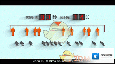 统计显示,预警时间为 10 秒时,可以减少 39% 的伤亡;预警时间为 20 秒时,可以减少 63% 的伤亡。