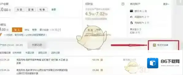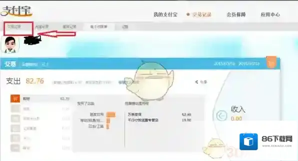 1、登陆你的支付宝首页,点击电子账单,进入界面之后会看到交易记录,点击即可。