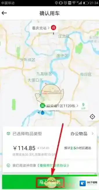 7、这样,就进入到了图示的页面,页面上会显示帮忙所需要支付的费用信息,若无疑议则点击页面下方的马上帮我送,然后等待平台安排人员与你联系取件就行了。