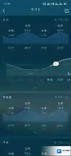 4、最后可以进入当前定位的区域所有可以钓鱼的位置的潮汐信息啦,点击“倒三角”可以查看潮汐详细的时间段;