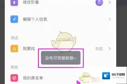 《Uki》恢复聊天记录教程 2025-07-08 16:47:09 编辑:往事随风 分类:应用教程 • 阅读:1001 1、打开ukiAPP。 2、进入APP页面,点击右下角的“我”。 3、点击右上角的设置图标。 4、点击数据恢复。 5、弹出提示,点击“恢复”。 6、因为我第一次使用,所以没有数据,之前用过的,聊天记录即可恢复。 发表回复 请登录后评论... 登录后才能评论 评论列表 (0条)