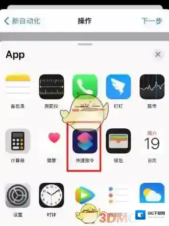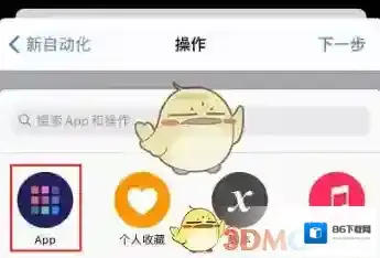 7、点击添加操作,点击图中的app选项,选择快捷指令