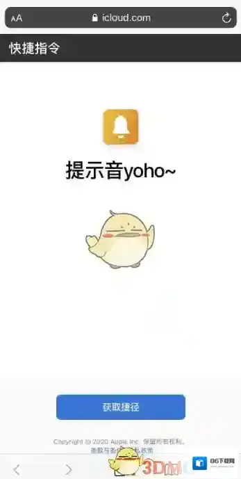 4、打开icloud中的提示音,并点击获取捷径。(将会自动跳转至快捷指令)
